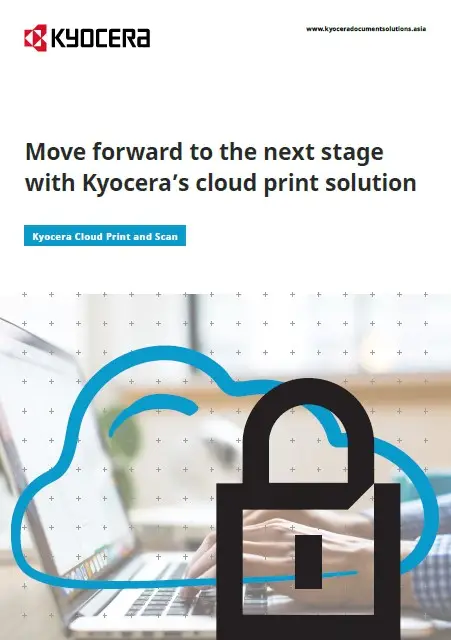 Move forward to the next stage with Kyocera’s cloud print solution.Kyocera’s native cloud platform technology allows you to optimize your company’s print and scan environment. Kyocera Cloud Print and Scan increases the flexibility and features of your print and scan environment and removes the costs of on-site servers by managing your Kyocera devices in the cloud. It provides full integration with Microsoft Azure Active Directory and the Kyocera Mobile Print app.